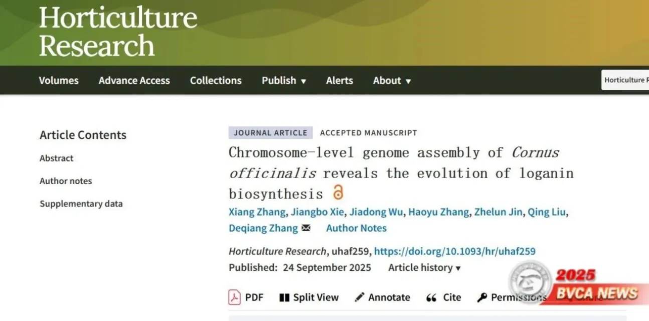 近日,我校张德强教授团队在Horticulture Research发表了题为“Chromosome-level genome assembly ofCornus officinalisreveals the evolution of loganin biosynthesis”的学术论文,破译了重要药用植物山茱萸高质量基因组,首次完整揭示了其药用活性成分马钱苷(loganin)的生物合成路径与进化机制,研究成果不仅为山茱萸的药用开发提供了重要理论基石,也为马钱苷的生物合成与高效生产提供了思路。